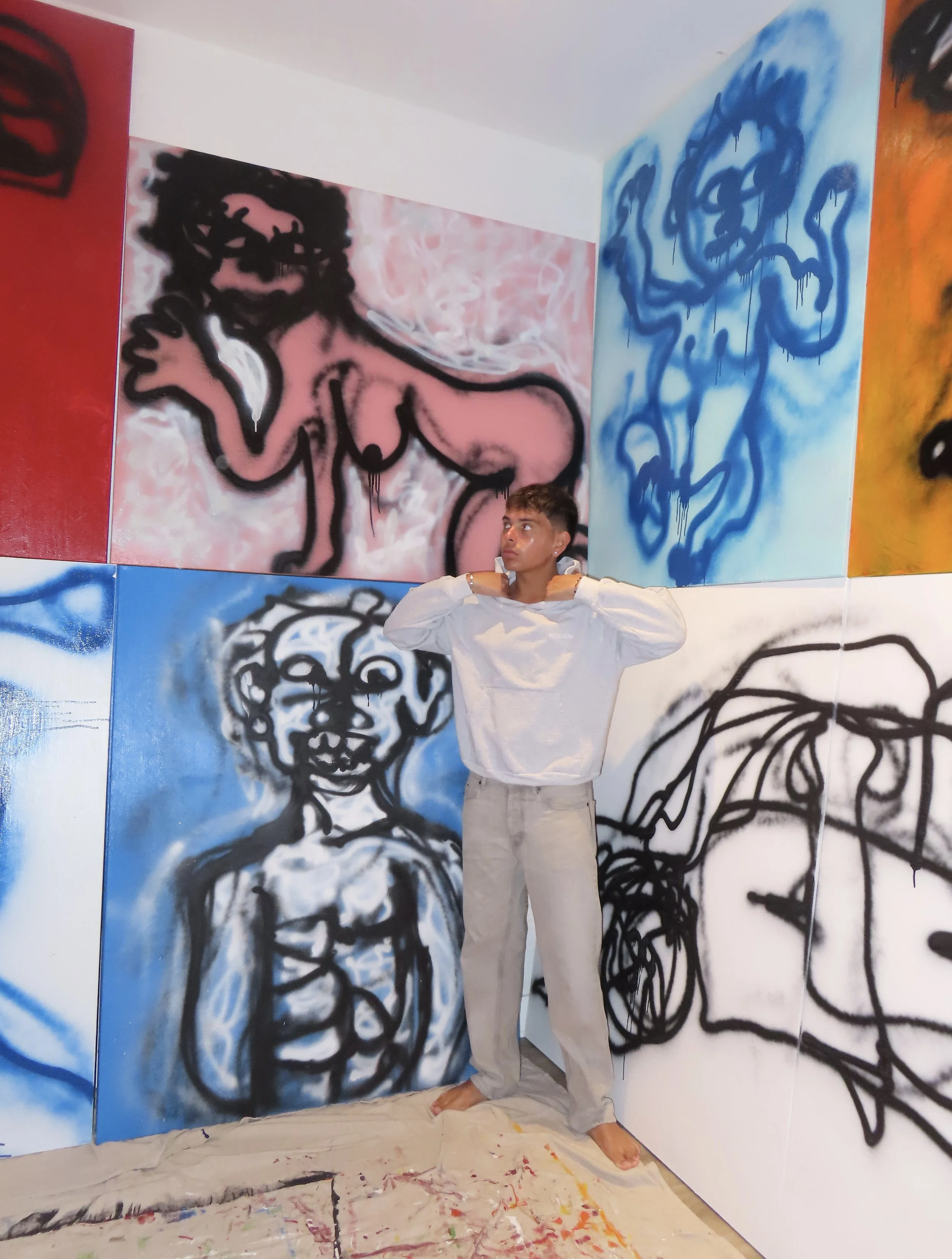 Deemed “The Picasso of Gen Z,” by Univision’s Despierta América, Juan Salcedo, known professionally as Salcedo, is a twenty year-old multi-faceted artist, whose talents span diverse creative mediums, such as visual art, fashion design, and poetry. His works aim to reflect the boundless creativity and refracted perspectives of society's youth. His goal is not to attain so-called "perfection," or to work inside of the established notion of aesthetics. Instead, it is to demonstrate how he sees world, encapsulating all of the beauty and wretchedness within it.